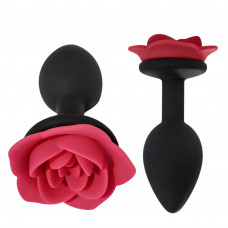 код товара: A80743Анальная пробка ALUME, S, силиконовая черная с красной розой, 8 х 2,8 см