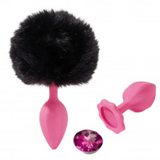 код товара: A80395Анальная пробка рельефная ALUME S, розовая с черным пушком и съемным розовым камнем, 7 × 2,8 см