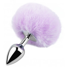 Анальная пробка с хвостом EGZO - Bunny Tail Silver Plug Light Purple, size S