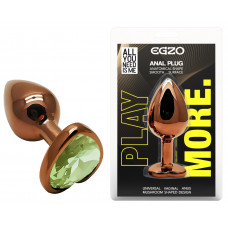 Анальная пробка с кристаллом EGZO - Dark Gold Heart Plug Green, size S