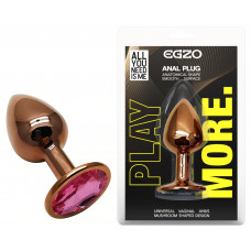 Анальная пробка с кристаллом EGZO - Dark Gold Round Plug Rose, size S