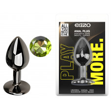 Анальная пробка с кристаллом EGZO - Dark Gray Round Plug Green, size S