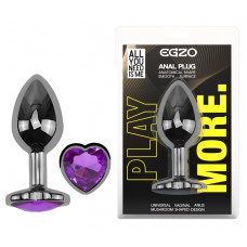 Анальная пробка с кристаллом EGZO - Dark Silver Heart Plug Purple size S
