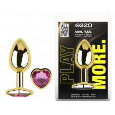 Анальная пробка с кристаллом EGZO - Gold Heart Plug Rose size S