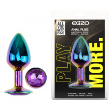 Анальная пробка с кристаллом EGZO - Multicolor Round Plug Purple size S
