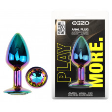 Анальная пробка с кристаллом EGZO - Multicolor Round Plug Rainbow size S