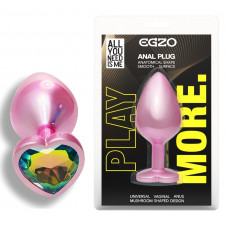 Анальная пробка с кристаллом EGZO - Pink Perl Heart Plug Rainbow, size S