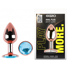 Анальная пробка с кристаллом EGZO - Rose Gold Round Plug Aqua size S