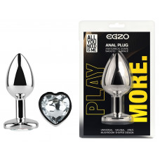 Анальная пробка с кристаллом EGZO - Silver Heart Plug Clear size S