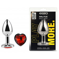 Анальная пробка с кристаллом EGZO - Silver Heart Plug Red size S