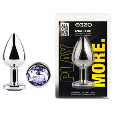 Анальная пробка с кристаллом EGZO - Silver Round Plug Amethyst size S