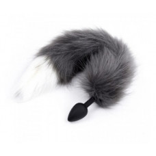 Анальная пробка S с хвостом DS Fetish Anal plug S black silikone faux fur fox polyeste