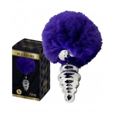 Анальная рельефная пробка Alive Anal Pleasure с темно-фиолетовым хвостом, S