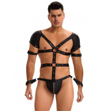 Мужское боди-портупея Star Night с ограничителями — это выразительный элемент образа, созданный для тех, кто ценит силу, контроль и эстетику доминирования. Модель выполнена из прочного эластичного материала, который подчёркивает линии тела и обеспечивает плотную, но комфортную посадку.