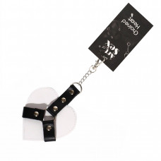 Брелок изготовлен с использованием натуральной и искусственной кожи высокого качества. Благодаря своему необычному дизайну он подойдет для ценителей БДСМ, как маркер принадлежности к Теме. Также его можно использовать поклонникам альтернативных стилей типа альт, готов или панков.