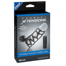 Эрекционная вибронасадка на пенис Pipedream Fantasy X-tensions с кольцом на мошонку, чёрная