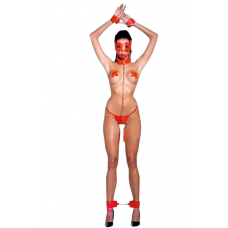 Комплект БДСМ Sunspice ошейник, наручники и поножи, маска, кляп, пестисы и стринги, красный