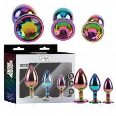 Набор анальных пробок разноцветные CHISA MATRIX MONT с разноцветным камнем, 3 шт