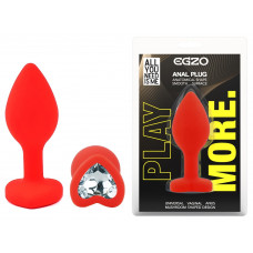 Силиконовая анальная пробка EGZO - Silicone Red Heart Plug Clear, size S