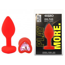 Силиконовая анальная пробка EGZO - Silicone Red Heart Plug Pink, size S
