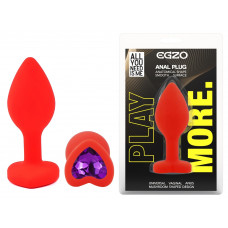Силиконовая анальная пробка EGZO - Silicone Red Heart Plug Purple, size S