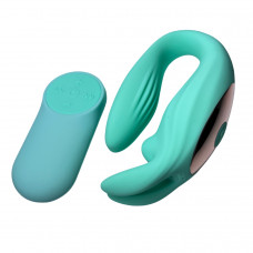 Вибратор для пар в форме зайца Passion Play с пультом, бирюзовый сочетает элегантный дизайн и продуманную эргономику, создавая уникальный опыт близости для двоих. Его изысканные линии и бирюзовый оттенок подчеркивают современный стиль и внимание к деталям, а форма кролика обеспечивает одновременную стимуляцию разных зон.